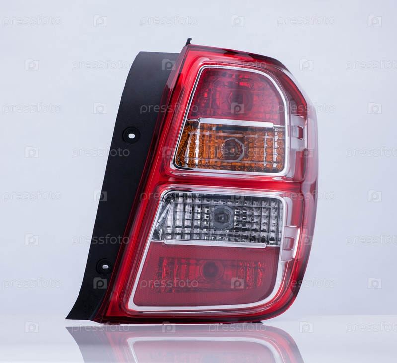 Фара автомобиля на белом фоне с отражением