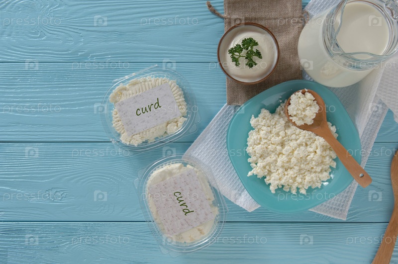Молочные продукты на синем фоне
