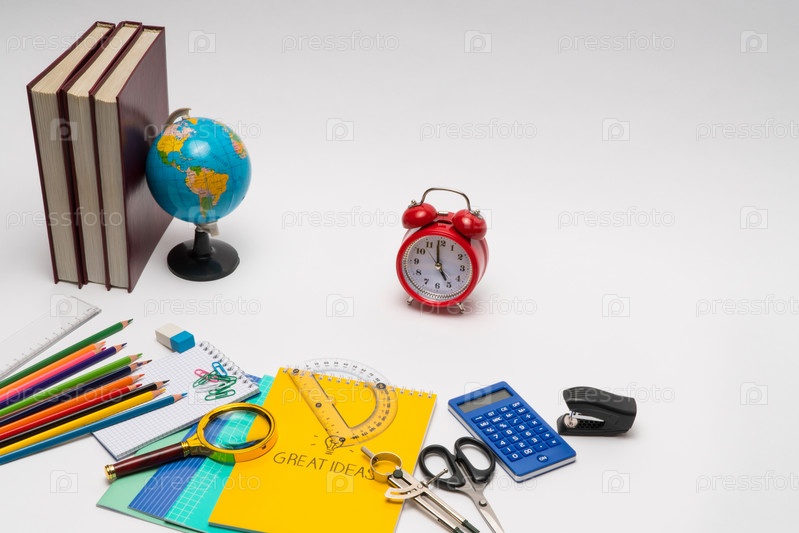Школьные принадлежности на белом фоне