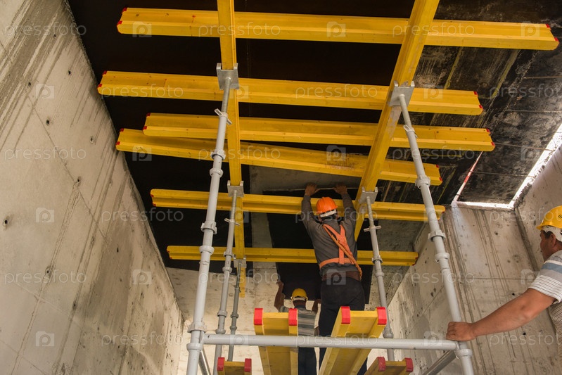Рабочие уложили строительные леса