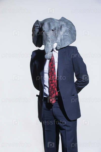 Мужчина в маске слона на светлом фоне
