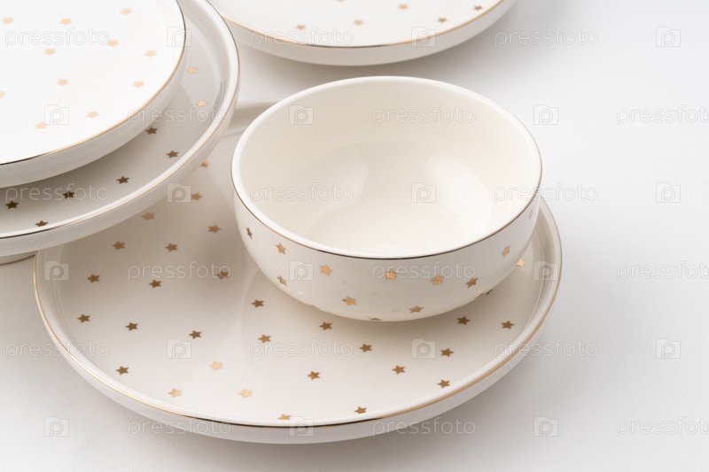 Набор керамической посуды на белом фоне