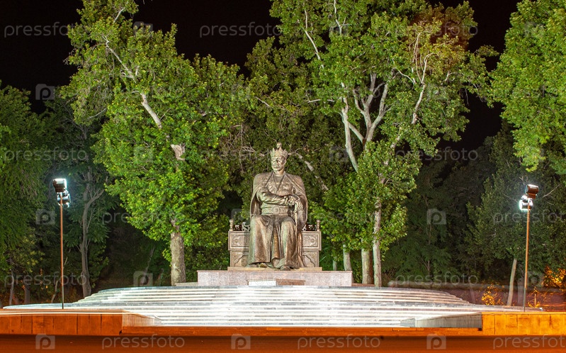 Памятник Амиру Тимуру (Тамерлану) в Самарканде ночью. Узбекистан