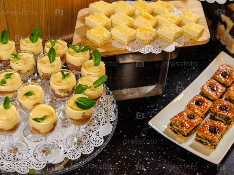 Крупный план фуршета с десертами и сладостями