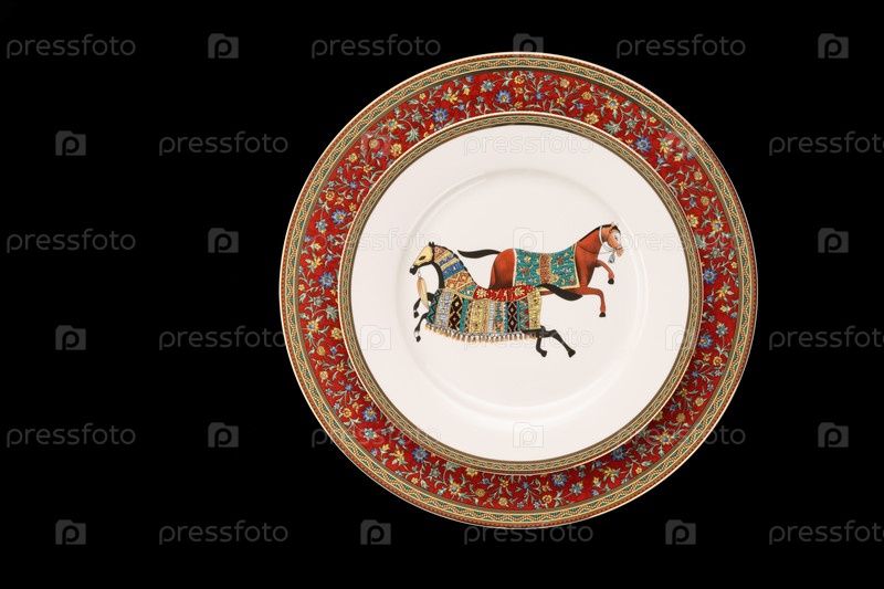 Вид сверху крупным планом на роскошную керамическую посуду, изолированную на черном фоне