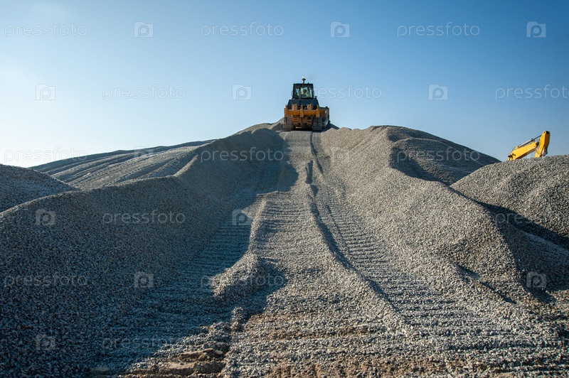 Трактор работает в районе промышленного строительства