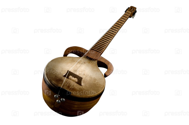 Древний азиатский струнный музыкальный инструмент на белом фоне