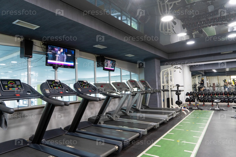 Ряд беговых дорожек в спортивном комплексе