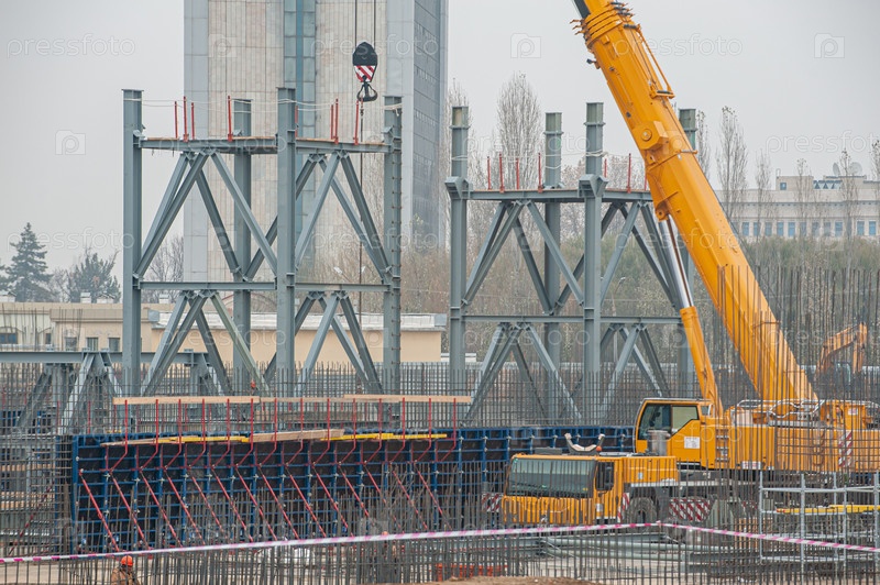 Гусеничный кран, работающий в районе промышленного строительства