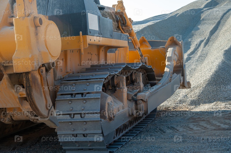 Крупный план трактора, работающего в районе промышленного строительства