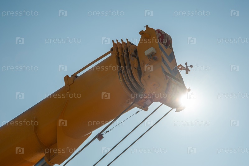 Крупный план башни гусеничного крана на фоне солнечного неба
