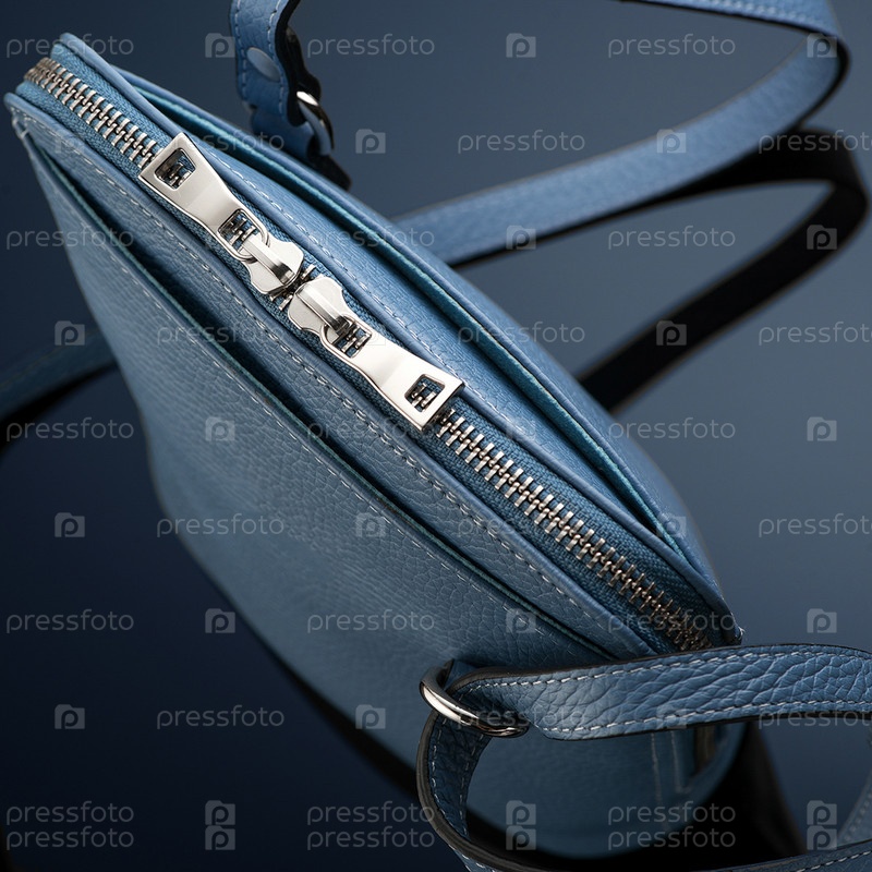 Крупный план роскошной синей кожаной сумки