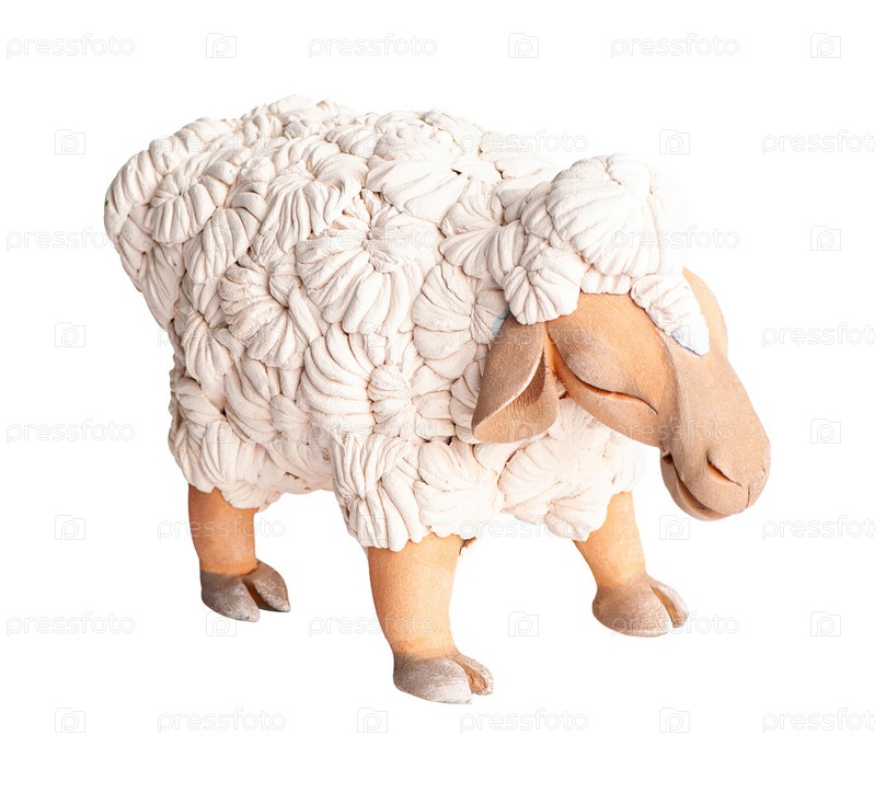Ягненок, глиняный восточный сувенир на белом фоне