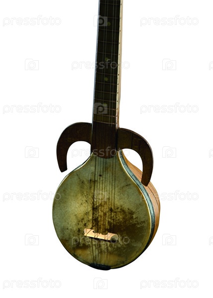 Древний азиатский струнный музыкальный инструмент на белом фоне