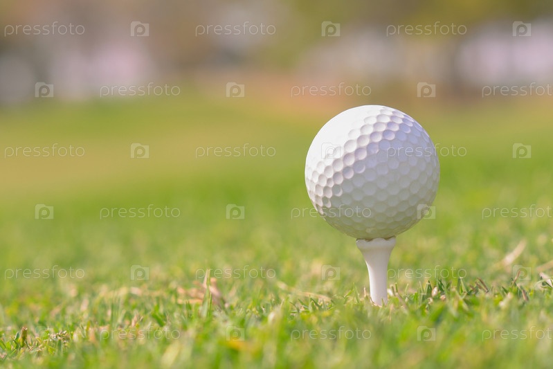 Крупный план белого мяча для гольфа на поле