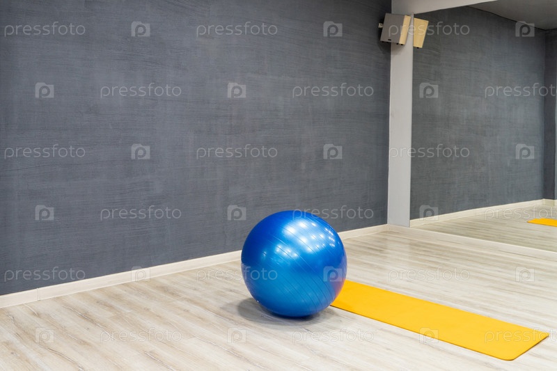 Синий мяч для упражнений в спортивном комплексе