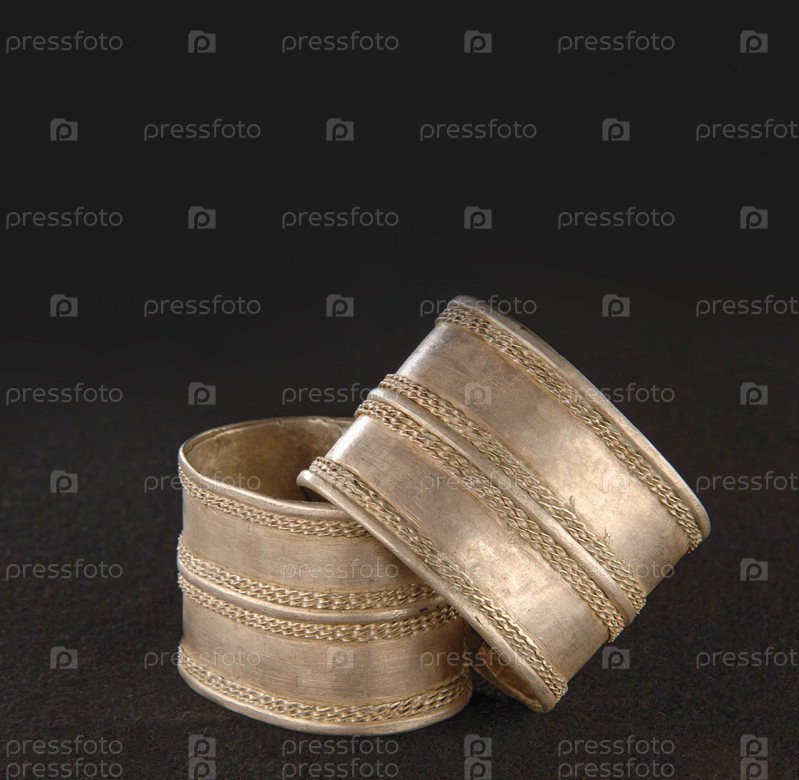 Старинный браслет с гравировкой на черном фоне, вертикальный