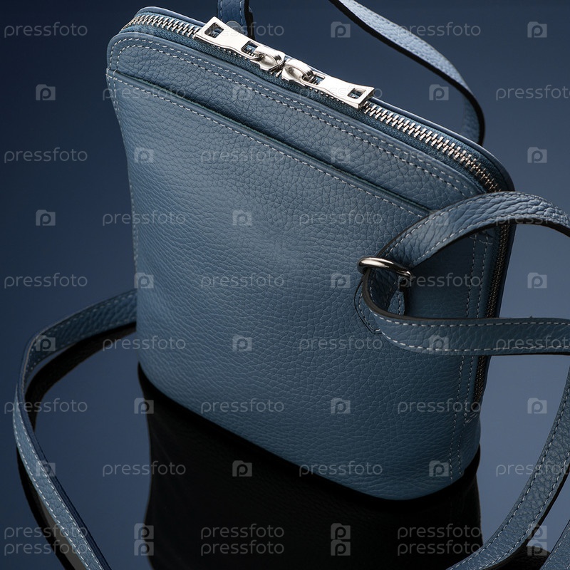 Крупный план роскошной синей кожаной сумки