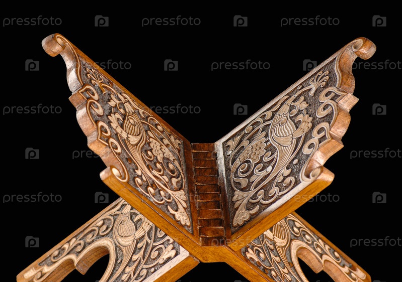 Винтажный восточный стенд для чтения книг изолирован на черном фоне. Средняя Азия, Узбекистан