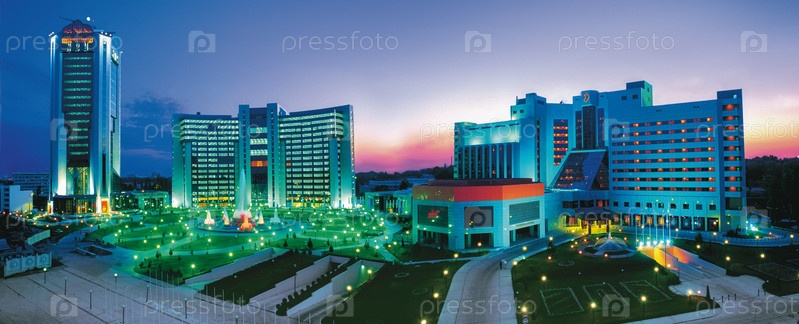Панорамный снимок современного города с бизнес-центром и гостиницами в Ташкенте, Узбекистан
