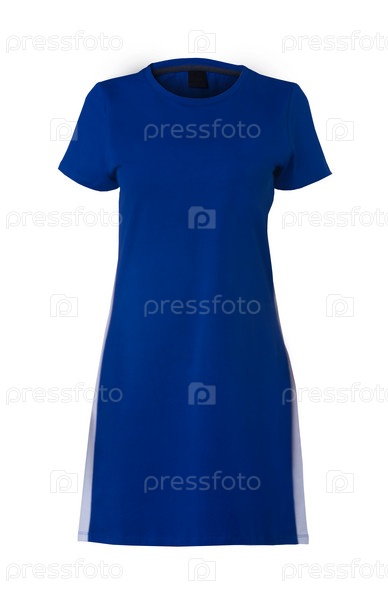 Синее прямое женское платье с короткими рукавами, изолированное на белом