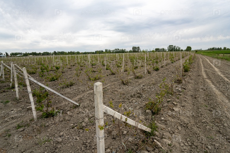 Вид на виноградники в сельской местности. Центральная Азия