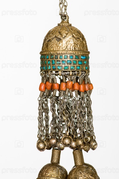 Винтажный, причудливый ювелирный кулон с драгоценными камнями, изолированными на белом фоне, вертикальный