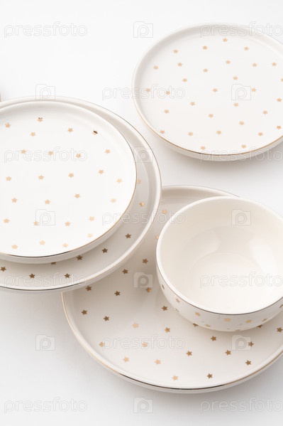 Набор керамической посуды на белом фоне