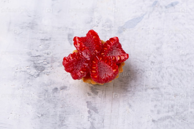 Вид сверху украшенной красной малины на поверхности белого мрамора