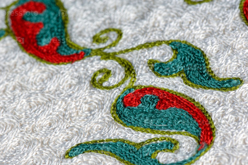 Крупный план национальных орнаментов и узоров Средней Азии на куске ткани