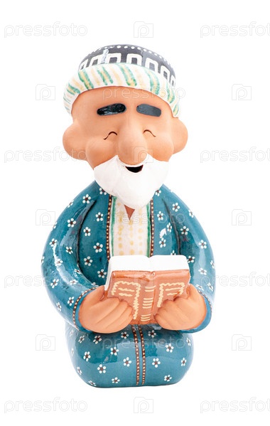 Дедушка, глиняный восточный сувенир на белом фоне