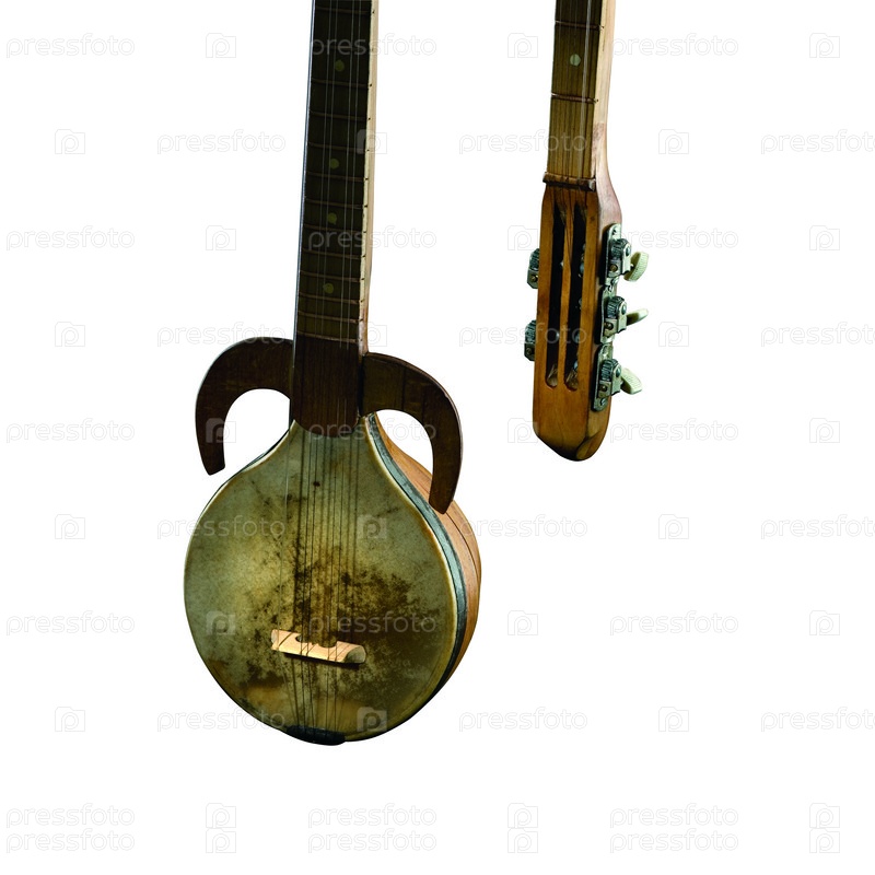 Древний азиатский струнный музыкальный инструмент на белом фоне