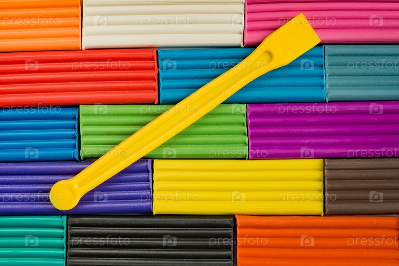 Цвета радуги из пластилина. Разноцветный пластилиновый фон с желтой пластиковой палочкой