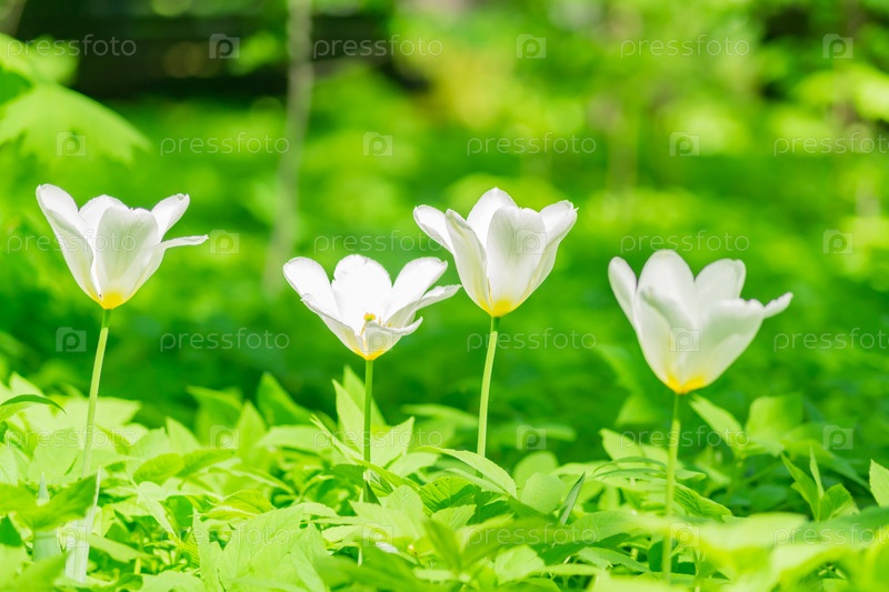 Закройте белый и красный тюльпан. Цветочный фон. Пейзаж летнего сада