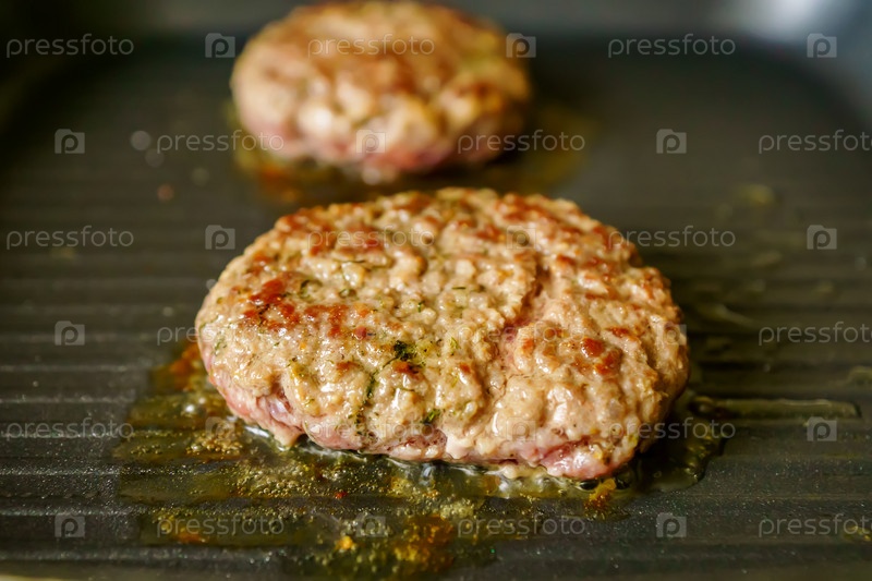 Приготовление мясных бургеров со специями на гриле дома. Крупным планом, выборочный фокус