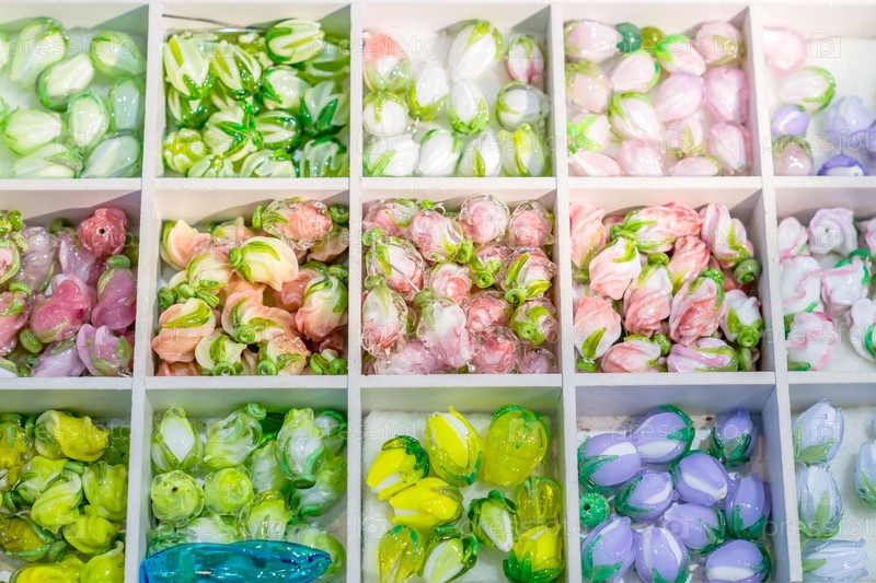 Разноцветная смесь бусин лэмпворк на подносе для изготовления ожерелий или браслетов, материалы для рукоделия