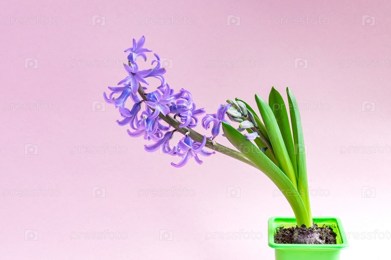 Закройте цветок цветущего голубого гиацинта на фиолетовом фоне