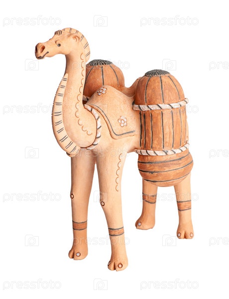 Верблюд, глиняный восточный сувенир на белом фоне