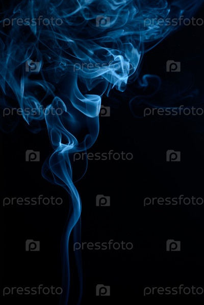 Вертикальный снимок синего табачного дыма на черном фоне