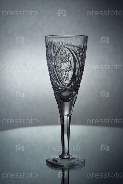 Вертикальный снимок пустого бокала для шампанского на сером фоне
