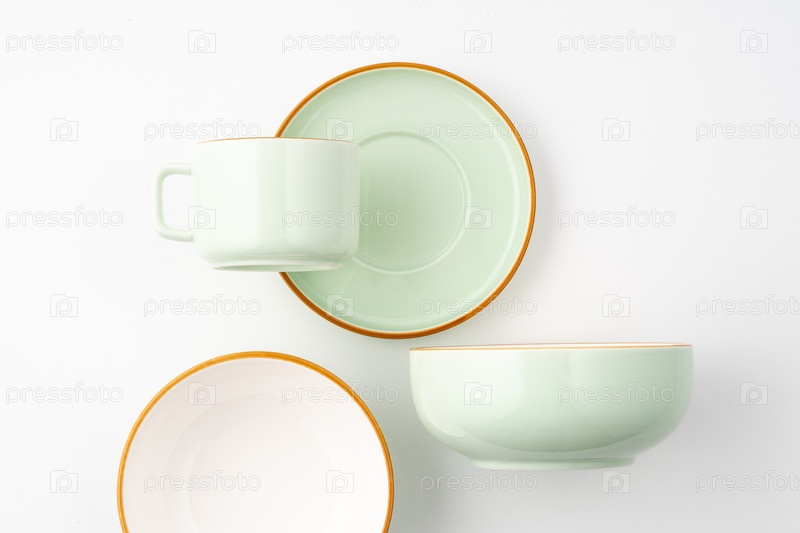 Набор керамической посуды на белом фоне