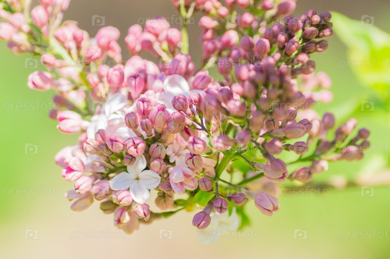 Цветущая розовая сирень на зеленом фоне крупным планом. Весенние вибрации
