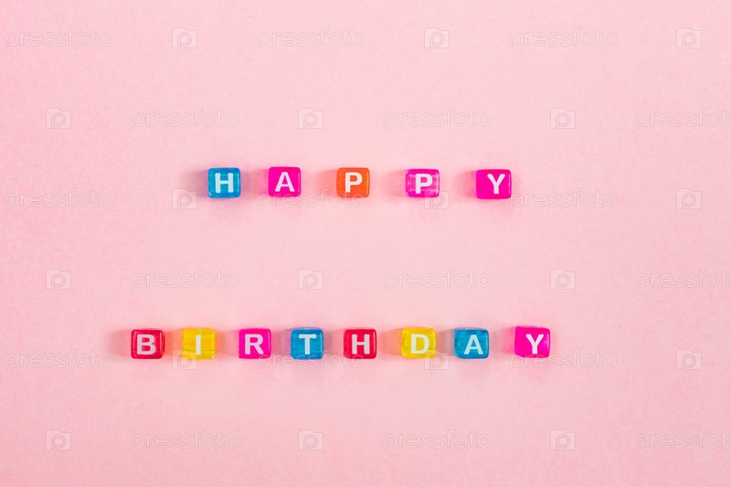 С днем рождения мама надпись из разноцветных кубических бусин с буквами. Праздничная концепция розового фона с копировальным пространством