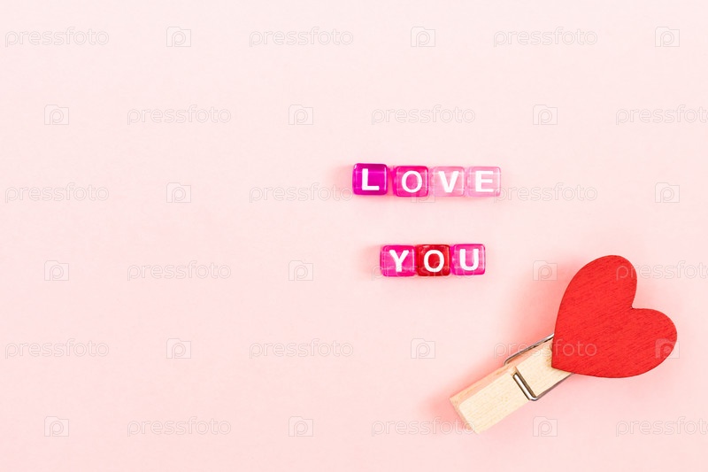 Люблю тебя надпись из красочных кубических бусин с буквами. Праздничная концепция розового фона с копировальным пространством
