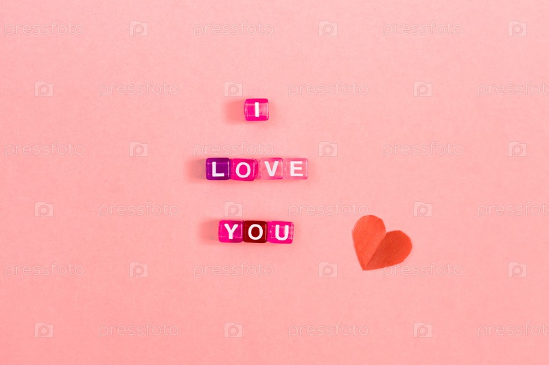 Люблю тебя надпись из красочных кубических бусин с буквами. Праздничная концепция розового фона с копировальным пространством