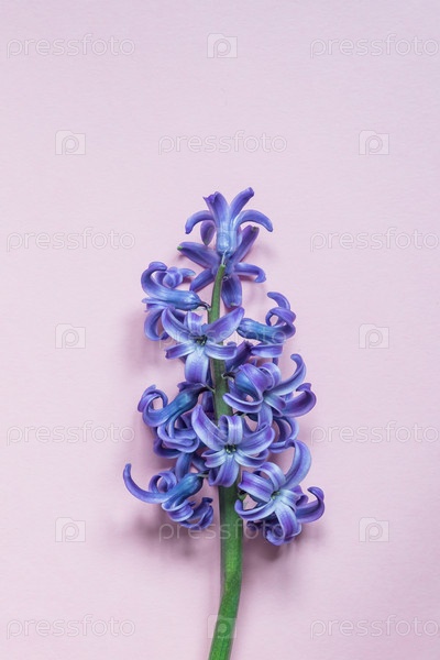Розовый цветок гиацинта на пастельно-розовом фоне. Плоская планировка, вид сверху, пространство для копирования