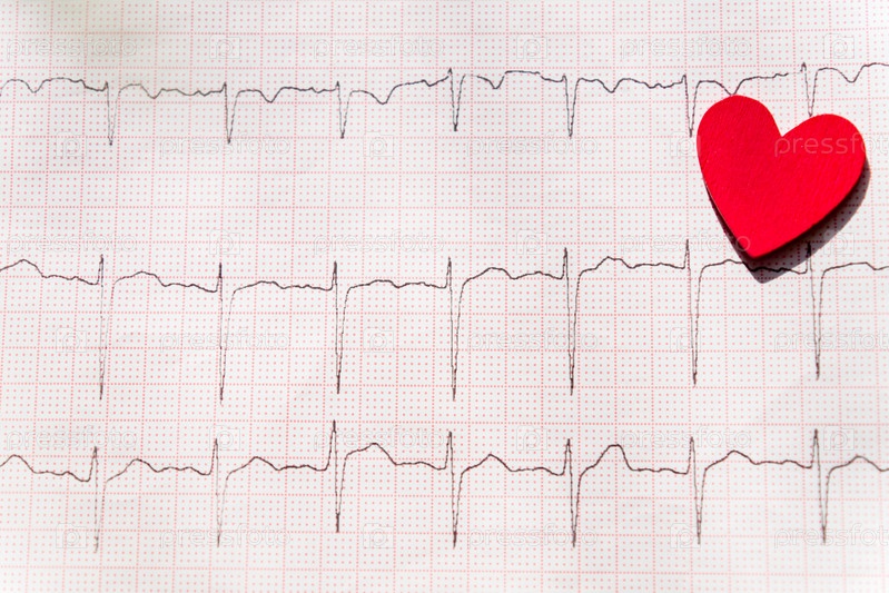 Закройте электрокардиограмму в бумажной форме с красным деревянным сердцем. Фон бумаги ЭКГ или ЭКГ. концепция медицины и здравоохранения