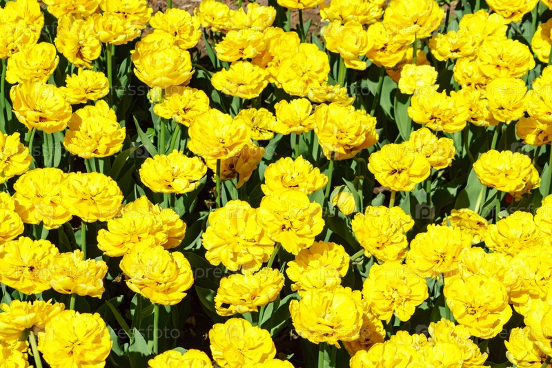 Поле желтых тюльпанов. Цветочный фон. Пейзаж летнего сада