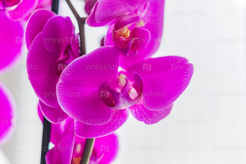 Coseup цветущей фиолетовой орхидеи фаленопсис на подоконнике. Домашнее садоводство, экзотическое растение