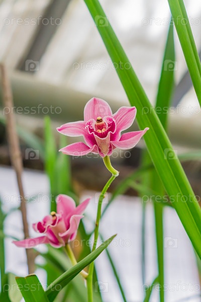 Розовые экзотические цветы орхидеи в ботаническом саду